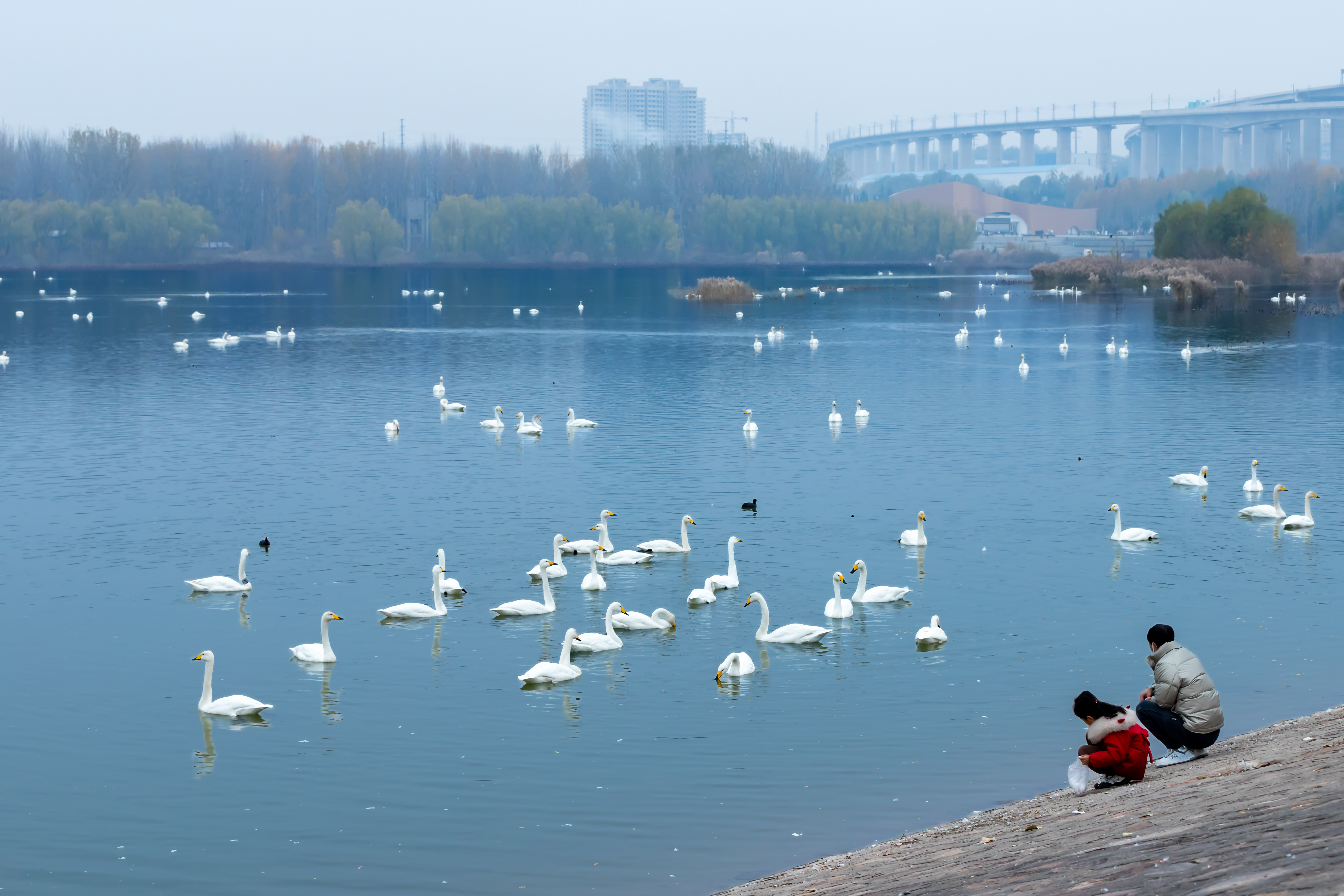 Photo taken on the evening of November 19 shows Luopu Park, which stretches east to west along the Luohe River in Luoyang city.