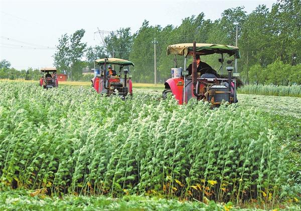 Photo taken on May 15 shows that farmers busy harvesting mugwort leaves at a planting base in Cha'an village of Cha'an town, Wancheng district, Nanyang city, Central China's Henan province.(Text: Henan Daily Photo: Gao Song)