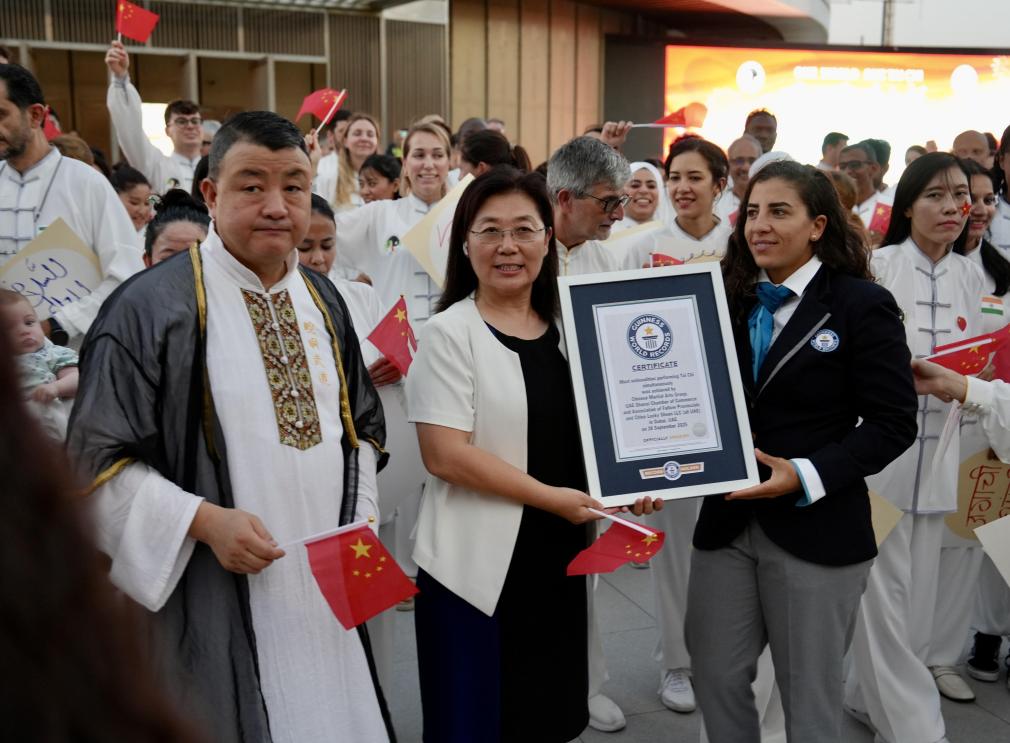 Under the supervision of adjudicator Kanzy El Defrawy, 180 participants simultaneously completed a full set of tai chi movements. Hailing from five continents, people of different colors and languages expressed their shared yearning for peace, respect for culture and cherished friendship through the unified movements and rhythms. The youngest participant was 6 years old, while the oldest was 71.