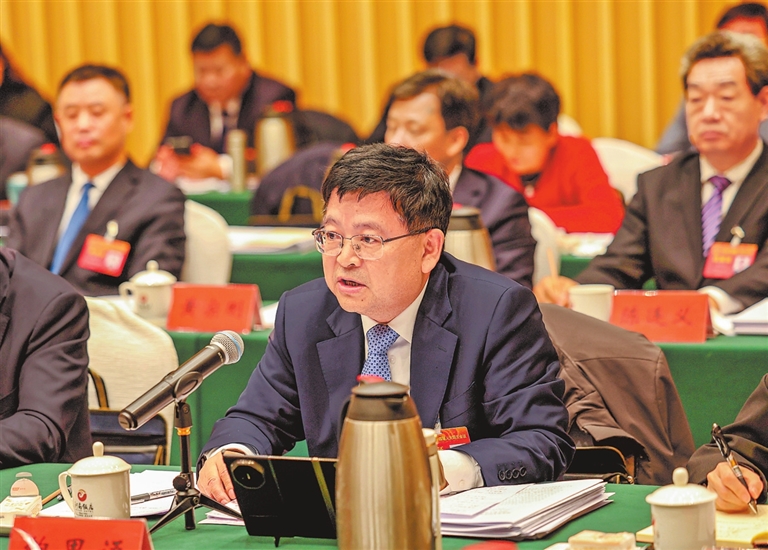 Photo taken on January 28 shows a deputy to the fourth session of the 14th Henan Provincial People's Congress making remarks during group discussions. (Text: Henan Daily Photo: Deng Fang)