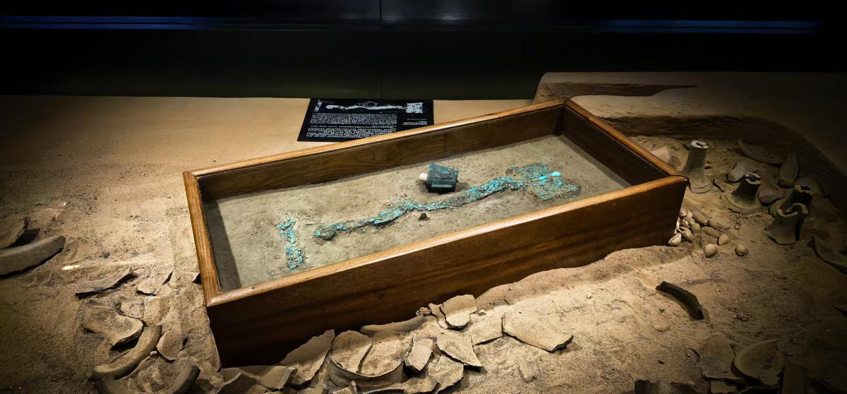 A dragon-shaped object inlaid with turquoise at the Erlitou Site in Luoyang, Henan province. [Photo by Li Xin/for chinadaily.com.cn]